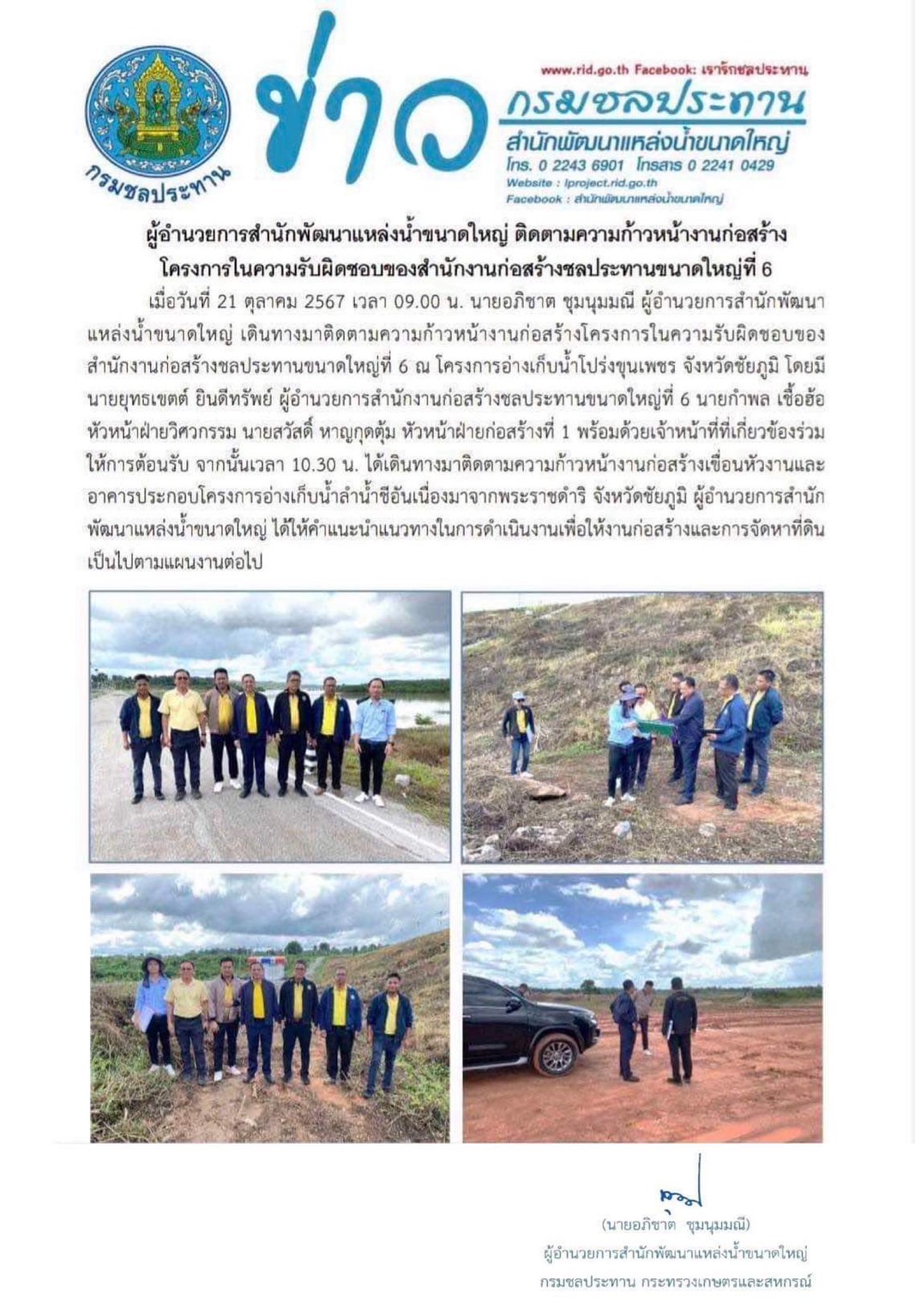 ผู้อำนวยการสำนักพัฒนาแหล่งน้ำขนาดใหญ่-ติดตามความก้าวหน้างานก่อสร้างโครงการในความรับผิดชอบ-ของสำนักงานก่อสร้างชลประทานใหญ่ที่-6